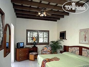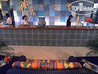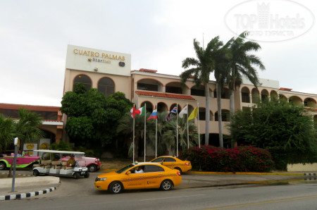 Отель образован на месте особняка в колониальном стиле. Это сильно выделяет его среди огромных классических отелей. Cuatro Palmas очень уютный и небольшой. Он светлый и просторный. Состоит из главного трехэтажного корпуса, корпусов-бунгало и эконом корпусов через дорогу.