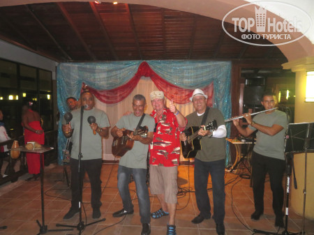 На территории отеля несколько баров. Бар в лобби работает 24 часа. Там самый вкусный кофе среди всего отеля. Бары на пляже и у бассейна работают с 10 до 18. Есть бар Starlight, он самый крутой из всех. Работает с 18 до 23 вечера. Здесь главный бармен Абель – маэстро самых вкусных коктейлей. Обязательно посетите!
