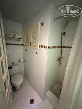 Сам номер: дверь балконная целая проблема чтобы открыть и закрыть, по бокам щели, а значит "Здравствуйте комары", для розетки нужен переходник , чтобы русская вилка воткнулась. Работала розетка только одна , где держался переходник. В туалетной комнате есть убитый фен, прикреплен плохо, розетка такая же, НО фен со стандартной нашей вилкой... В общем все через одно место.